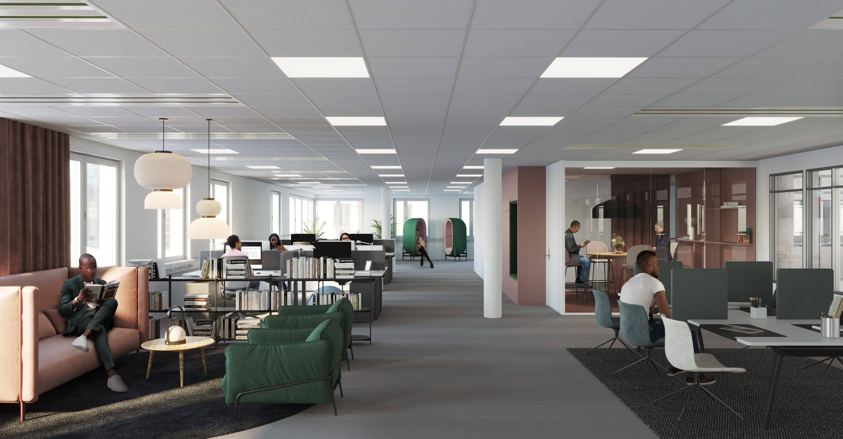 - Spatii de lucru moderne, cu layout deschis, detalii ergonomice si dinamism.