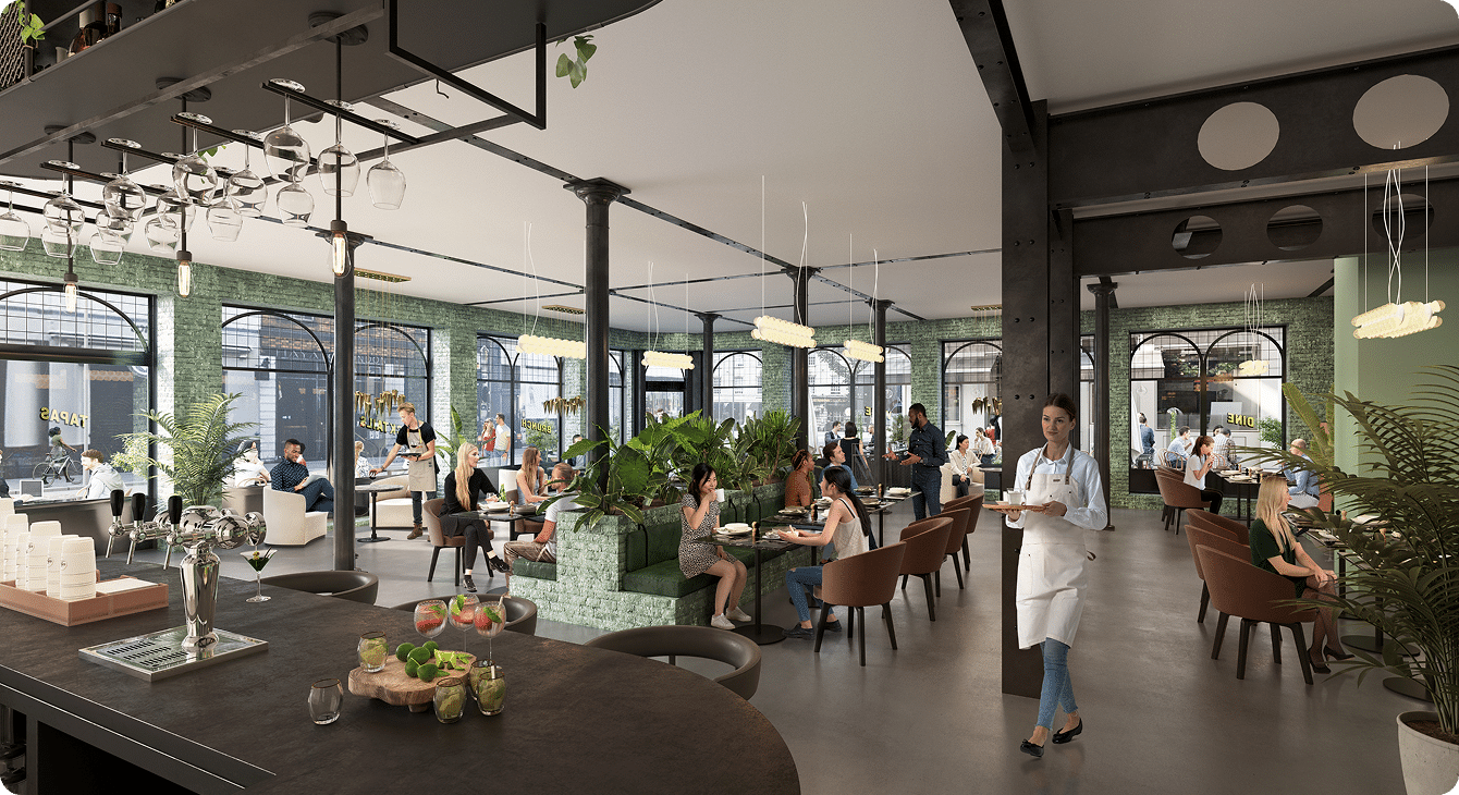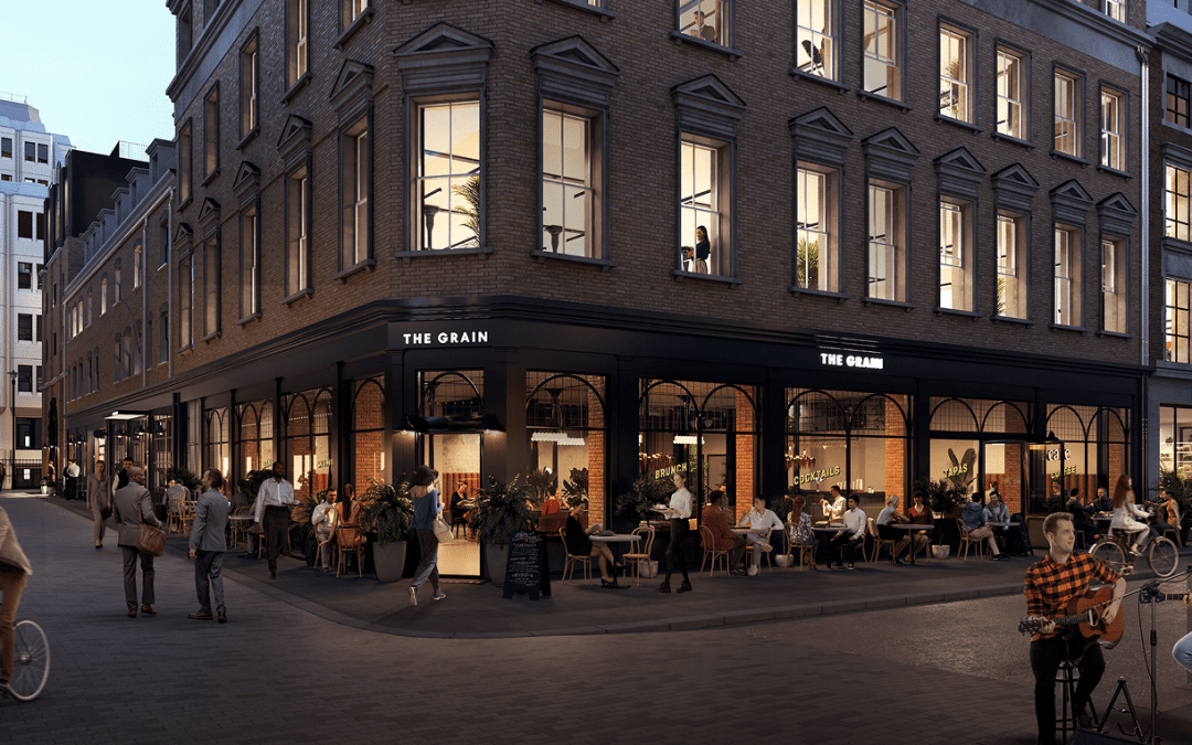 Restaurantul de la parter, The Grain, urma să fie un punct de atracție distinctiv, iar vizualurile trebuiau să transmită această identitate încă din faza de concept.